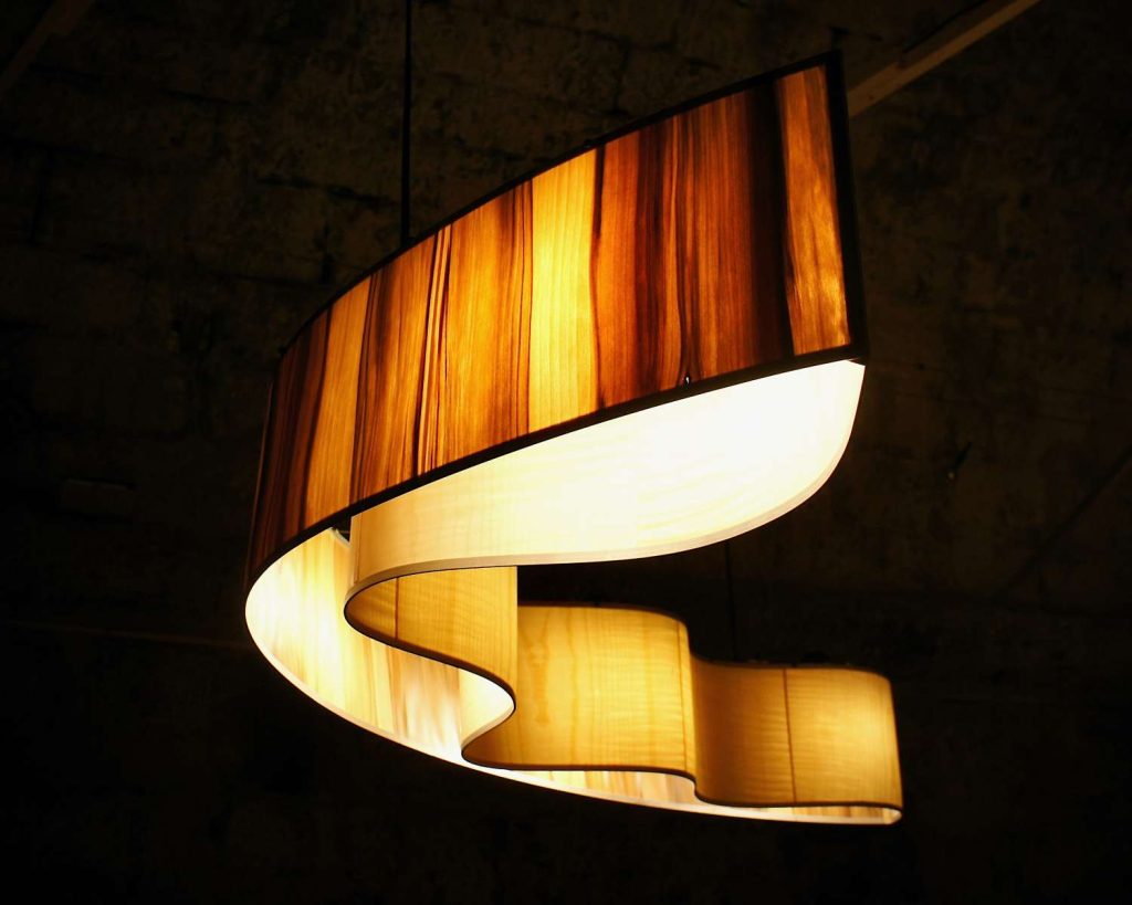 Luminaires en bois translucide. Du bois très fin qui laisse passer la lumière, révélant toutes les veines et les couleurs.