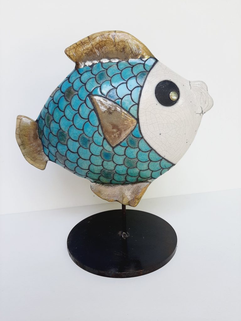 Créations en grès raku et enfumage.